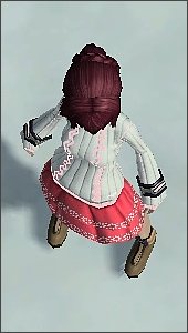 このコスチュームの場合ワインレッドと薄いピンクの格子模様で、パッと見にはチェックにも見えますが、似たような物ですね。