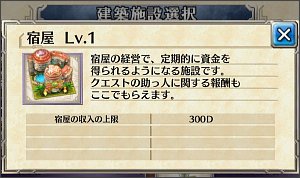 ゲーム内をあちこち見ていると、宿屋を建てると定期的に資金が得られるとのこと!